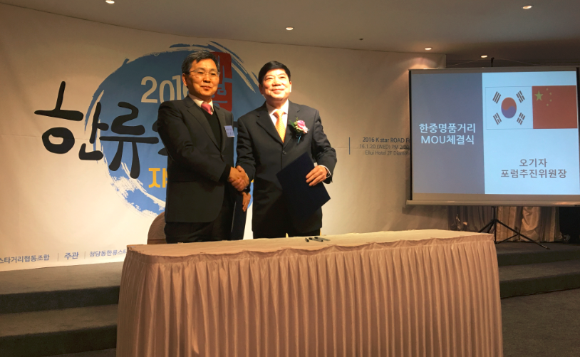 2016年1月20日,在首尔江南区清潭洞韩流明星街经济发展论坛上,钟家苏会长代表黄浦区淮海路经济发展促进会与首尔江南区清潭洞韩流明星街协会,共同签订《建立友好关系协议书》,两会就推动两街之间的经济贸易和文化交流合作,以及在商业街公共事务管理、文化培训、品牌建立等方面进行互相交流达成了共识。
